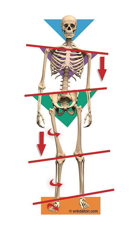 The body is a series of kinetic chains starting from the foot to the ankle to the knee and works its way up the chain to the hips, low back and so forth. In a kinetic chain, movement of one joint affects movement of another joint within that kinetic chain. Do you remember the song we learned as kids “the knee bone is connected to the hip bone?” That song is right. Everything is connected in the body so if one part of the body is injured or affected then it affects often distant parts of the body, unbeknown to you!